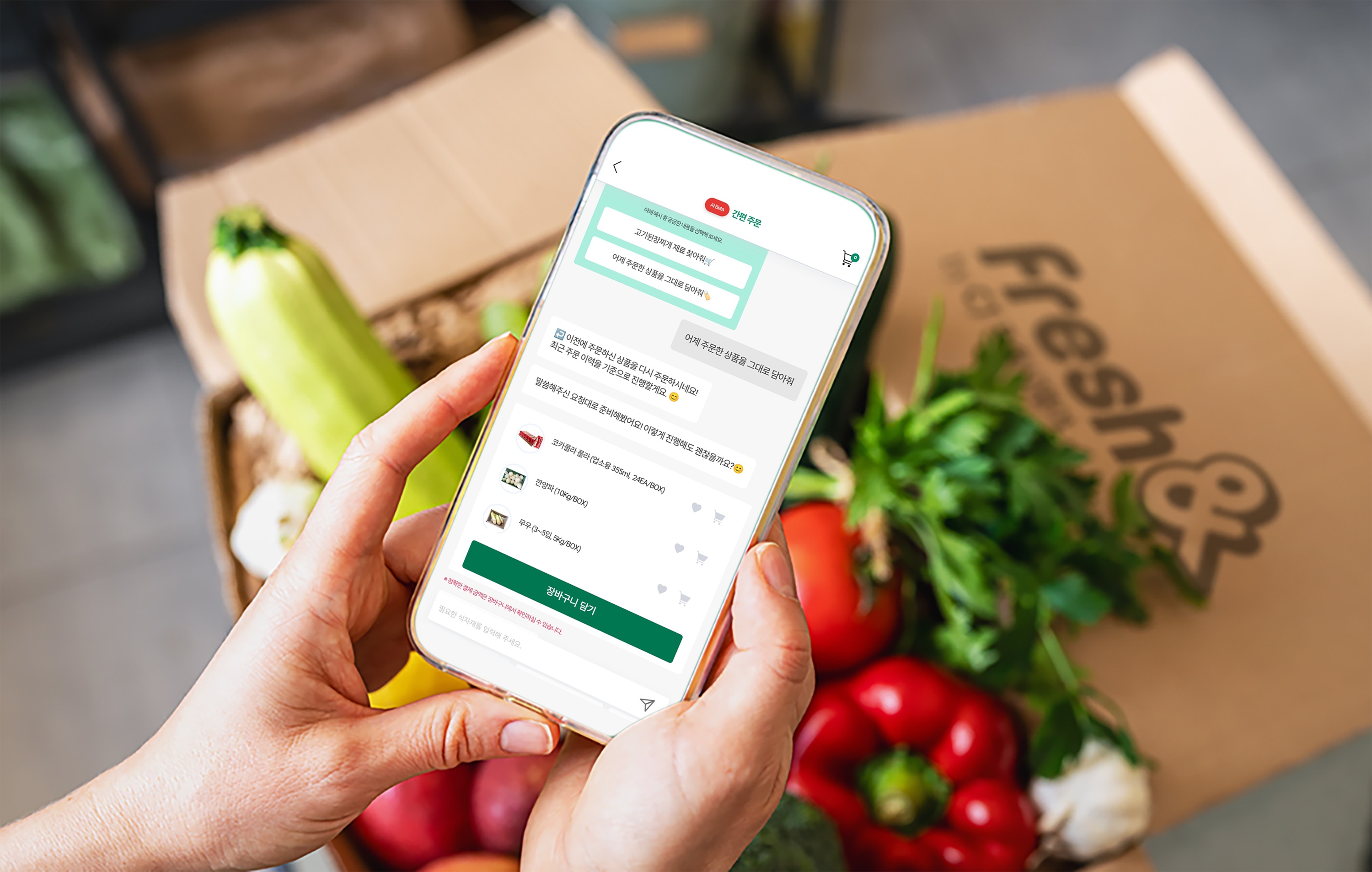 일상어 입력만으로 상품·규격·수량 자동 매칭해 장바구니 자동 담기 지원